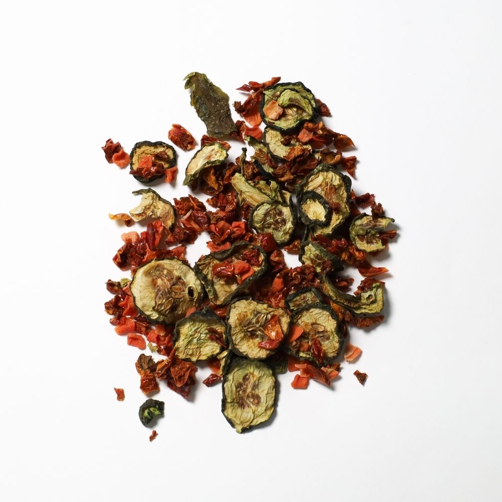 Dale a tus mascotas una combinación nutritiva y llena de sabor con nuestro alimento multivitamínico natural a base de pepino, pimiento, tomate y zanahoria. Este mix cuidadosamente seleccionado es una excelente fuente de vitaminas y minerales esenciales ideal para incorporar a la dieta de conejos y roedores.