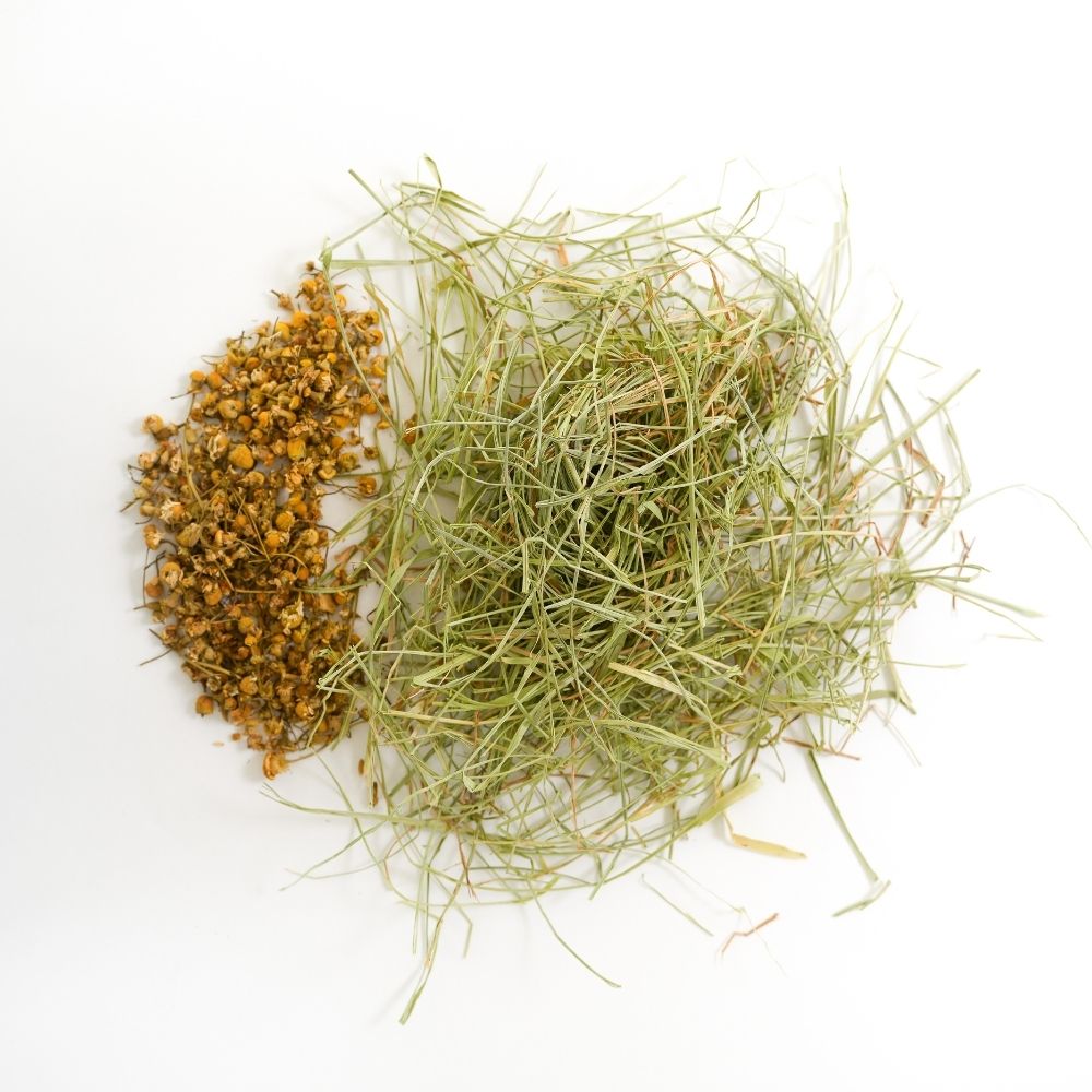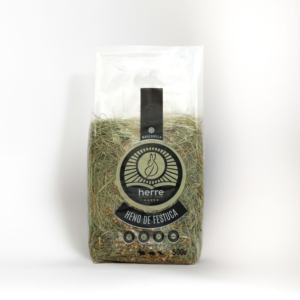 El Heno de Festuca Extra Verde con Manzanilla es ideal para conejos y cobayas. Además de su alto contenido en fibra, la manzanilla ofrece infinidad de micronutrientes. Recomendado para uso diario de manera ilimitada.