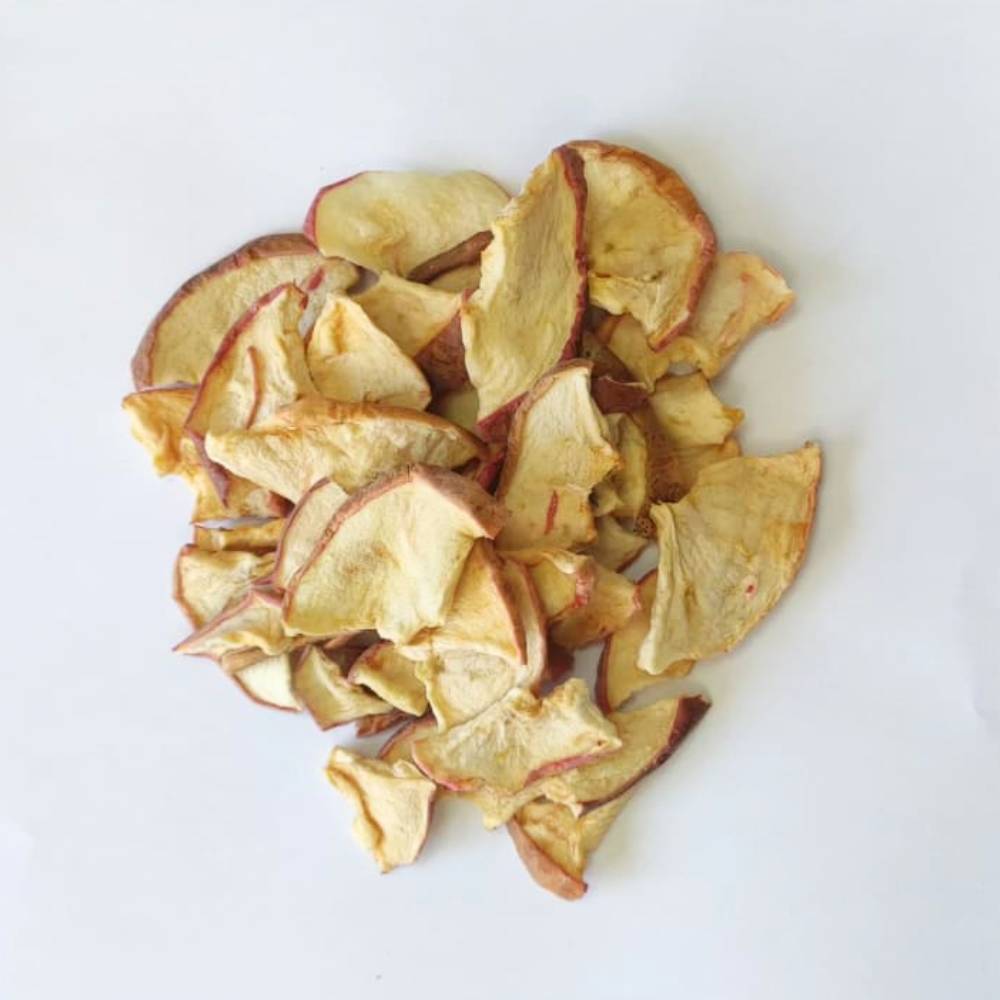 Regala a tus mascotas una opción de snack natural y saludable con nuestra manzana deshidratada 100% natural. Rica en vitaminas B y C, esta fruta aporta antioxidantes naturales que ayudan a retrasar el envejecimiento celular, promoviendo una vida larga y saludable para conejos y roedores.
